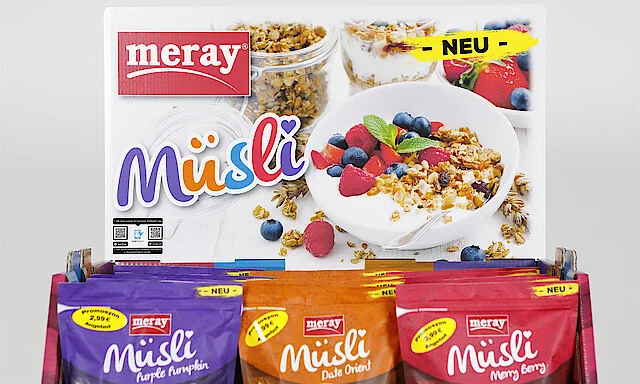 • Ergänzend zu dem intelligenten Verkaufsdisplay mit digitalem Druckbild wird mit zusätzlichen Verkostungsständen in ausgewählten Supermärkten die Aufmerksamkeit der Konsumenten auf das Meray Müsli gelenkt