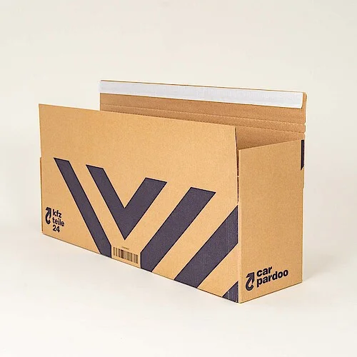 Der Onlinehändler kfzteile24, Deutschlands bekannteste Marke für Autoteile und Kfz-Zubehör, bietet ein Sortiment von über 4 Millionen Artikeln – von kleinsten Ersatzteilen bis zu sperrigen Komponenten. Entsprechend hoch sind die Anforderungen an eine effiziente Versandlogistik, da viele Bestellungen noch am Tag des Auftragseingangs versendet werden. Für kfzteile24 hat Thimm drei abgestimmte Versandverpackungen entwickelt: Eine Verpackungslösung für Kleinteile sowie eine speziell konstruierte Lösung für den sicheren Versand von Scheibenwischern – beide Versandverpackungen bestehen aus Wellpappe in E-Welle. Für den Versand größerer Produkte hingegen kommt der sogenannte E-Karton zum Einsatz, der aus Wellpappe in B-Welle produziert wird. So kann je nach Bestellumfang die passende Verpackungsgröße gewählt und Leerraum vermieden werden.